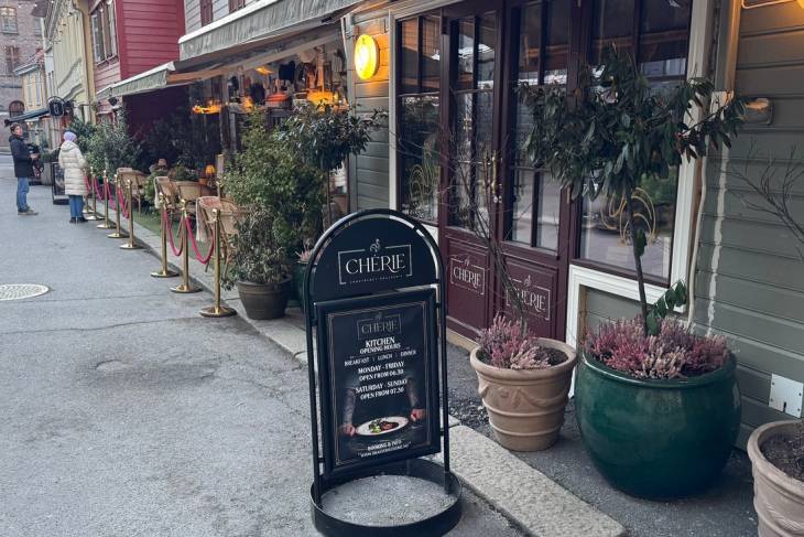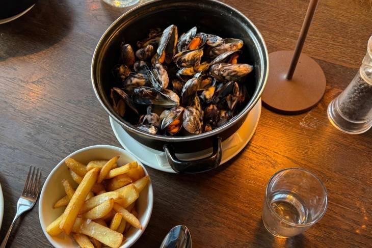 De mosselen zijn klein, maar intensief van smaak en gedrenkt in die romige witte wijnsaus werkelijk verrukkelijk. De zelfgemaakte frites zijn lekker cross gebakken en de bediening is supervriendelijk, maar er zijn beduidend meer toeristen dan Noorse gasten in dit restaurant. We horen Engels, Amerikaans en Spaans om ons heen. Dit typisch Noorse restaurant is zeker geen geheimtip, maar wel een puike plek, precies aan de overkant van de foodmarket.