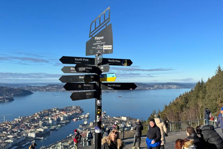 Vandaag staat het uitzichtpunt berg Floyen. Met de Floibanen-kabelbaan kan je vanaf het centrum binnen 10 minuten naar de top van de berg komen. De kosten voor een enkeltje zijn 80 Noorse kronen, dat is omgerekend zo'n zeven euro.
