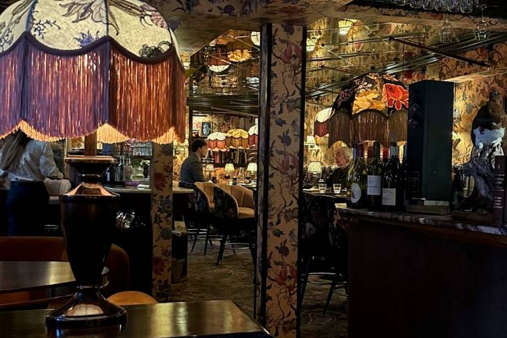 Tijdens onze wandeling belanden we ook in de idyllische Skostredet. We konden de verleiding niet weerstaan en liepen voor een drankje bij Brasserie Cherie binnen. Je treft een even onverwacht als heerlijke Franse ambiance aan, het personeel is internationaal en supervriendelijk. De inrichting is kleurrijk en met veel liefde voor art-deco en nog meer smaak samengesteld. Eigenlijk wil je hier gewoon blijven zitten en de koude boze buitenwereld vergeten. Let wel op wat je bestelt: de Noorse prijzen voor een glas wijn zijn al snel tot 15-20 euro. Per glas.