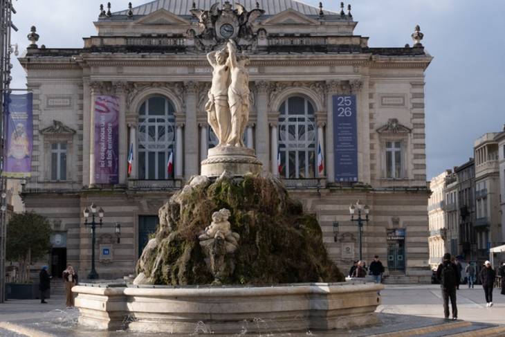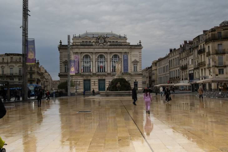 We starten op de Place Comedie met onze vrije wandeling bij de Opera die prominent achter een oude fontein staat. Het is bewolkt, de straten zijn nog nat. We lopen over het ruime plein (de Esplanade des Arts et de la Culture) richting het bekendste museum van de stad: Musee Fabre. Het huisvest een belangrijke collectie schilderijen en is zo een soort lokaal Rijksmuseum. Wij kiezen voor een selectie van de belangrijkste werken en zien ook kunst van Nederlandse schilders: Jacob van Ruysdeal, Paulus Potter en Jan Steen. Andere hoogtepunten zijn van plaatselijke schilders als Gustave Courbet en Bazille, waarvoor aparte zalen zijn ingericht. Het museum is aan de maat en de kans is dan ook groot dat je elkaar uit het oog verliest, zo ervaren we. Je kunt beter vooraf bedenken wat je wilt zien, anders ontstaat een overvloed aan indrukken.