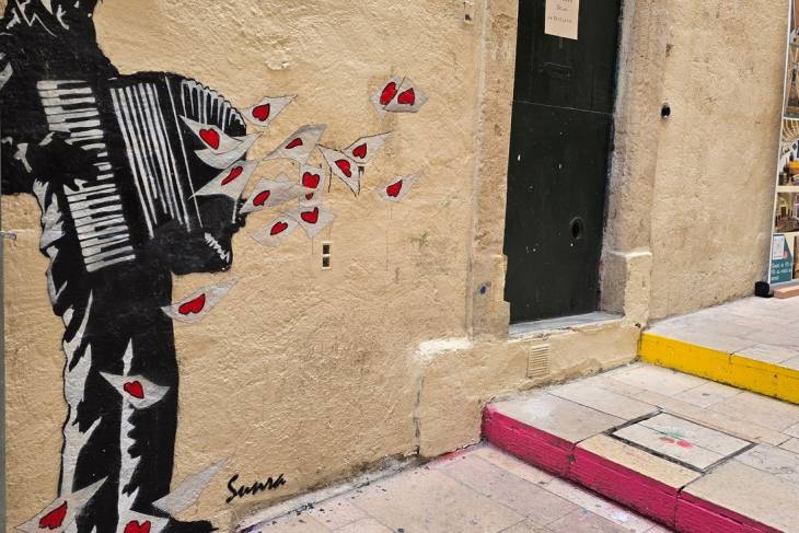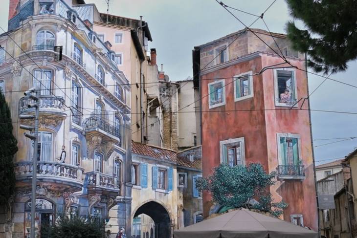 Van de klassieke werken is het een kleine stap naar het moderne werk. Street art is ‘een ding’ in deze stad. Soms zijn zelfs hele muren voorzien van afbeeldingen om het straatbeeld op te fleuren. Op de stadskaart zijn de mooiste met een symbool aangeduid als ‘Trompe l’oeil’ (bedrog van het oog). En ja, het is soms erg moeilijk om je niet te laten misleiden door wat je ziet. Bekijk in ieder geval degene recht tegenover de ingang van de kerk Saint-Roch en die bij Saint-Denis. Ook de kleinere Street Art draagt bij tot een verrassende afwisseling in het straatbeeld. En het levert ons een leuke speurtocht op in de wijk Gambetta. Al vinden we ons ook regelmatig voor de etalage van een verleidelijke bakkerij. Kunst schittert hier in vele verschijningsvormen.