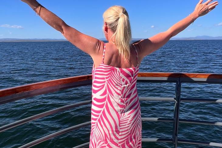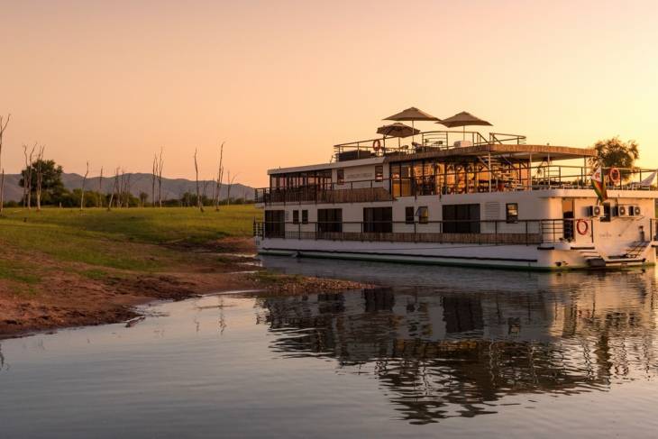 Eenmaal aangekomen in Kariba, gaan we aan boord van het schip de ‘Zimbabwean Dream’ van CroisiEurope waar we de komende dagen zullen verblijven. We worden door de Afrikaanse crew met zang en dans welkom geheten. Wat een feest om hier te zijn! Het kleinschalige, sfeervolle schip heeft ‘slechts’ 8 luxe hutten en is van alle comfort voorzien. Het is een bijzonder gevoel om vanuit mijn hut uit te kijken op het prachtige Karibameer. ‘s Avonds begint de tocht over het meer. We genieten van een diner terwijl een adembenemend landschap voorbijtrekt. En weer die zonsondergang die je nergens ziet, behalve in Afrika. Ik val in slaap, terugkijkend op weer een dag vol nu al onvergetelijke indrukken.