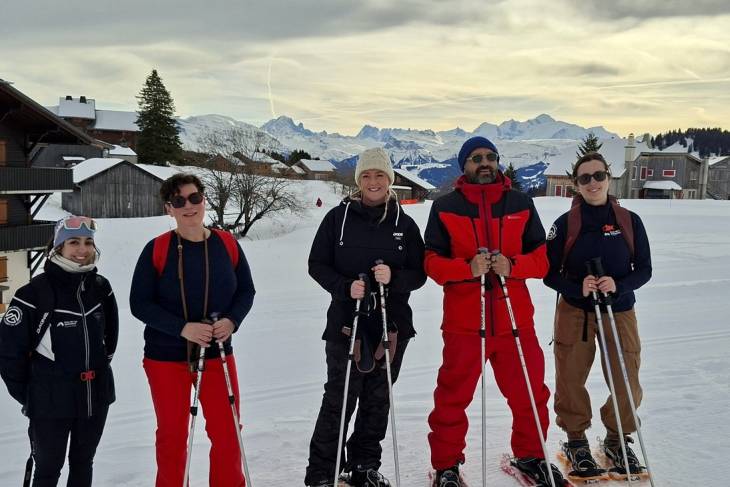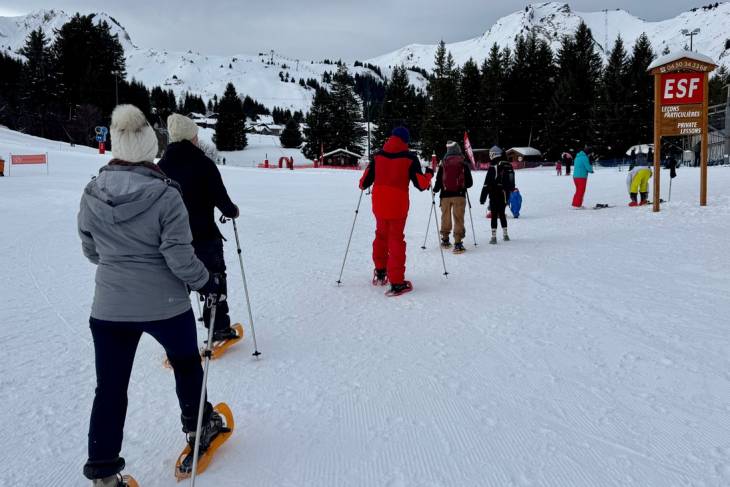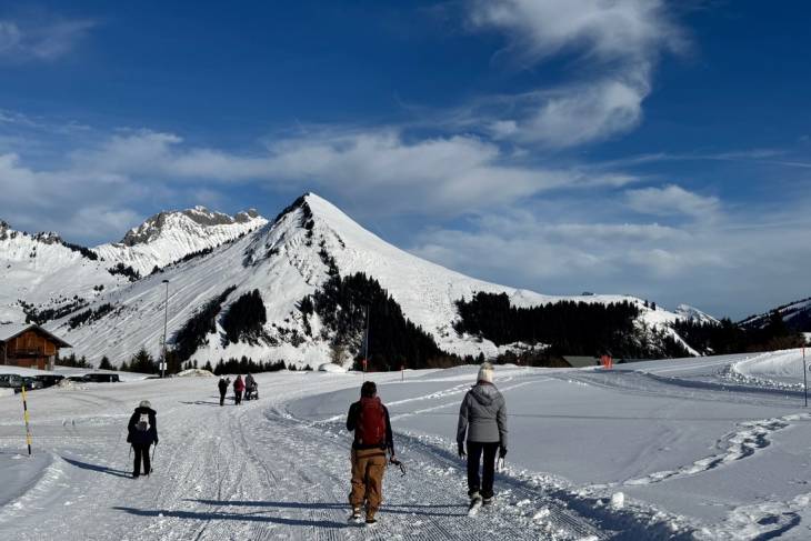 Praz de Lys (1450 m) is het volgende gehucht dat we aandoen. Vergeleken met de paar huizen in Solaison is het een serieus dorp met veel skiverhuur-adressen en een supermarkt. Praz de Lys is onderdeel van skigebied Praz de Lys/Sommand. Skiën kan er op elk niveau en ook is er 60 km aan langlaufpaden. Zelf doe ik vandaag mee aan een sneeuwschoenwandeling. De sneeuwschoenen – plateaus die je om je schoenen klemt – helpen je in de diepe sneeuw. Ga je bergop, dan klappen ze open als een klapschaats, bergaf vergrendel je ze juist, zodat ze dicht blijven. Het doel is naar Col de la Ramaz te lopen op 1610 meter hoogte. Vrolijk stappen we door de sneeuw. Het lopen én de zon maken echter behoorlijk dorstig. Dus staken we de tocht om neer te strijken bij de oergezellige bistro Jean de la Pipe in het dorpje Taninges.