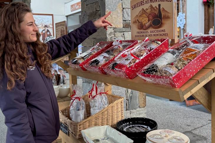 Delicatessenwinkel midden in het dorp met lokale specialiteiten als kaas, bier, wijn en worst. In de hele winkel ruikt het naar de geurige saucissons die aan het plafond bungelen.