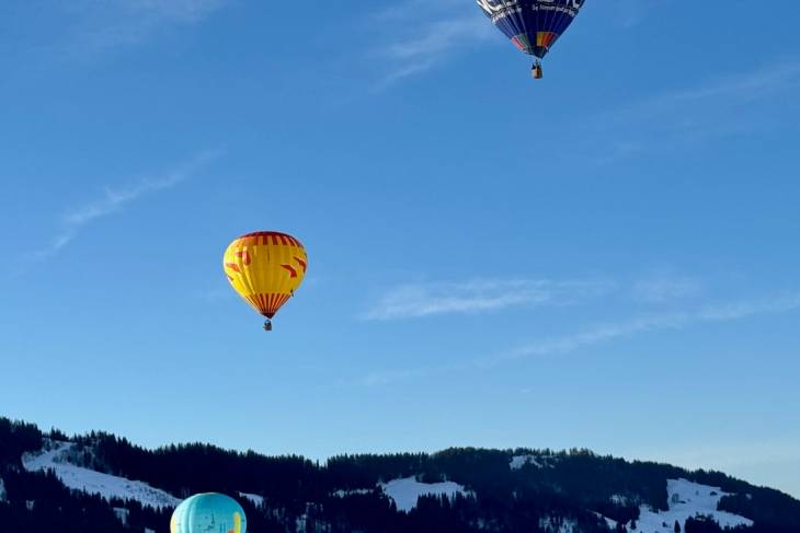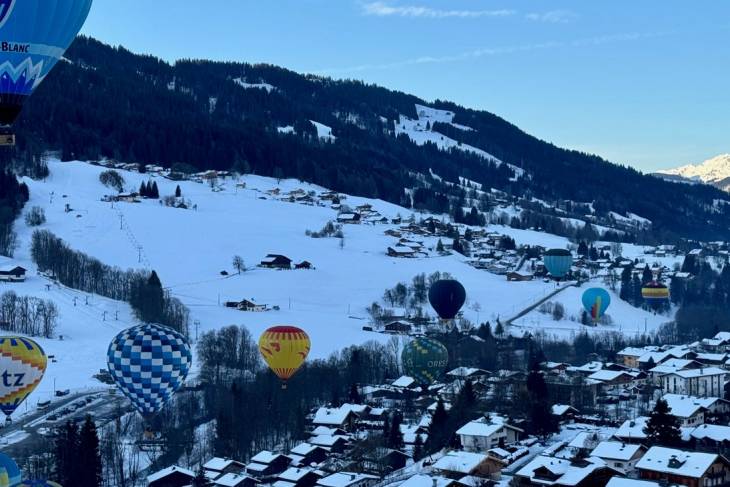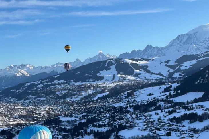 In Praz-sur-Arly is in januari het heteluchtballonfestival Montgolfiades Internationales en ik mag mee met de ballon van de vrolijke Corentin van Air Pégasus (air-pegasus.com)! Het Franse woord voor luchtballon is montgolfière, vernoemd naar de broers Montgolfier die hem in 1782 uitvonden. Met vijf personen klimmen we in het mandje en we hangen in de lucht voor ik er erg in heb. Praz-sur-Arly verdwijnt in de diepte. Onder en boven ons zweven andere kleurige ballonnen. Intussen zijn we afhankelijk van de wind. Het is letterlijk go with the flow. We trekken over Megève, scheren over dennenbossen en een skipiste, en zweven over het besneeuwde berglandschap steeds dichter naar de Mont Blanc. Ik vind het magisch. In het dorpje Cordon landen we zachtjes in de sneeuw. Het busje van Pégasus is ons gevolgd en pikt ons én de ballon weer op.