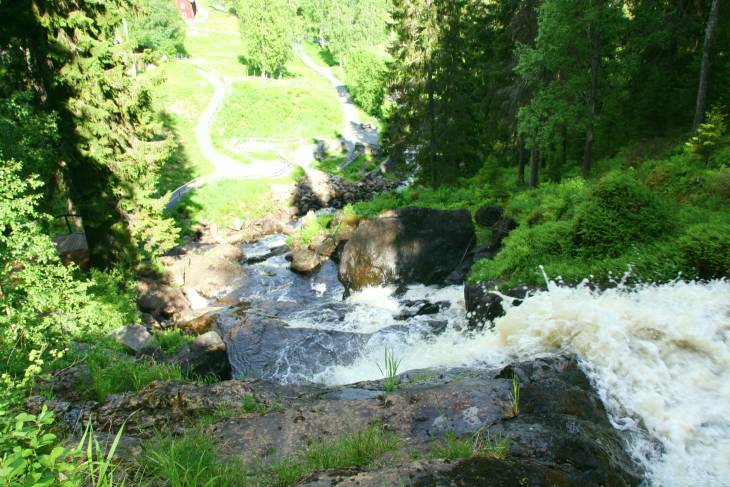 Vanaf Kvissleby zit je ongeveer 45 minuten in de auto om hier te komen: een van de mooiste watervallen van Zweden. Via rotsblokken en trappen kun je aan de rechterkant naar boven klimmen. Bovenaan steek je de waterval over en dan kun je aan de andere kant weer afdalen. In één woord? Schitterend!
