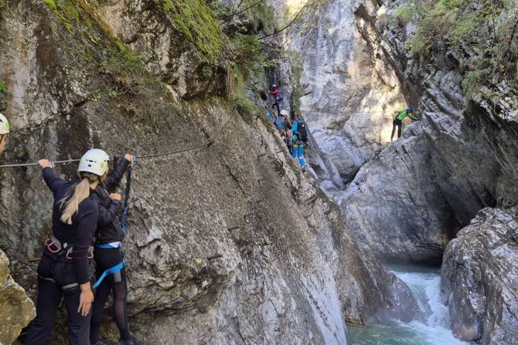 Helm op, gordel vast, musketons in de kabel: de klettersteig lonkt. Maar is het nat en glad, of voelt het niet goed? Dan kies je net zo makkelijk voor de wandelroute naar boven. Het uitzicht is dezelfde beloning – zonder knikkende knieën.