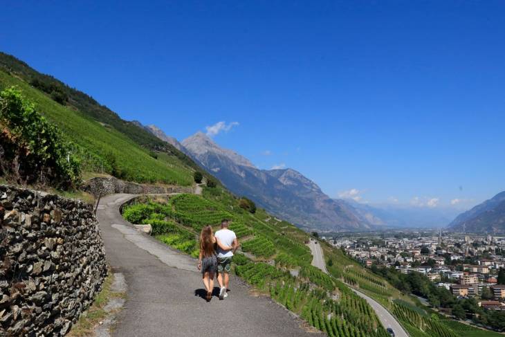 Om een goed overzicht te krijgen van de stad beginnen we bij het kasteel La Bâtiaz. Vroeger een verdedigingswerk, maar tegenwoordig een uitzichtpunt met een café. Vanaf de toren zie ik meteen hoe idyllisch Martigny is gelegen tussen wijnbergen en fruitbomen. Het warme, zonnige klimaat is ideaal voor de groei van abrikozen, aardbeien, peren en natuurlijk druiven. We maken een mooie wandeling langs de wijnranken van veelal kleinschalige boeren die met passie voortreffelijke wijn produceren. Even proeven hoort erbij en als ik later geniet van een heerlijke lunch onder de wijnranken bij Plan-Cerisier wordt me duidelijk waarom Martigny bekend staat om haar gastronomie.
