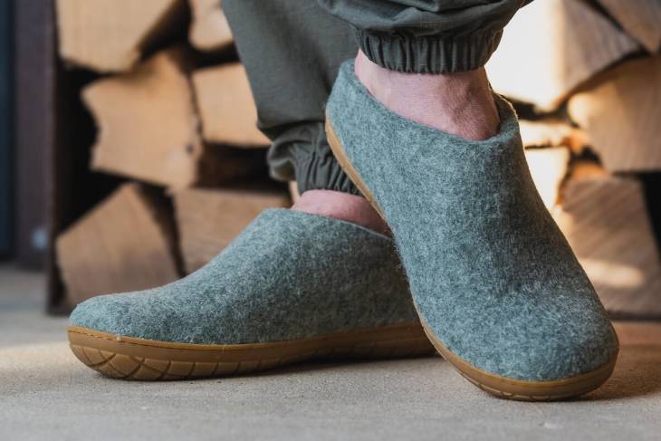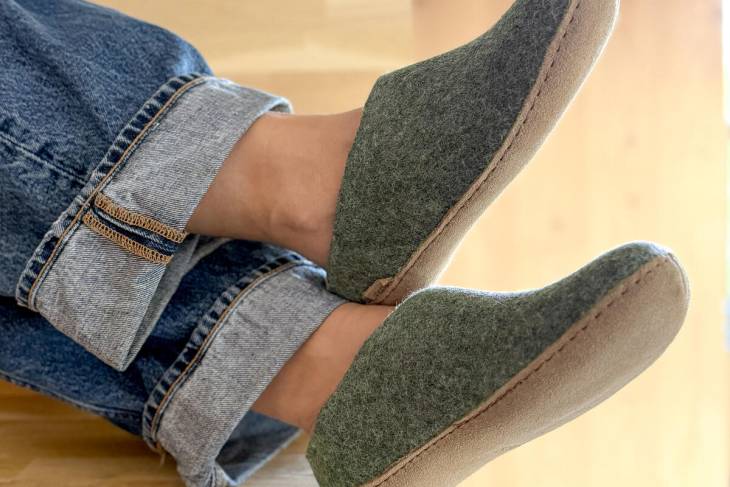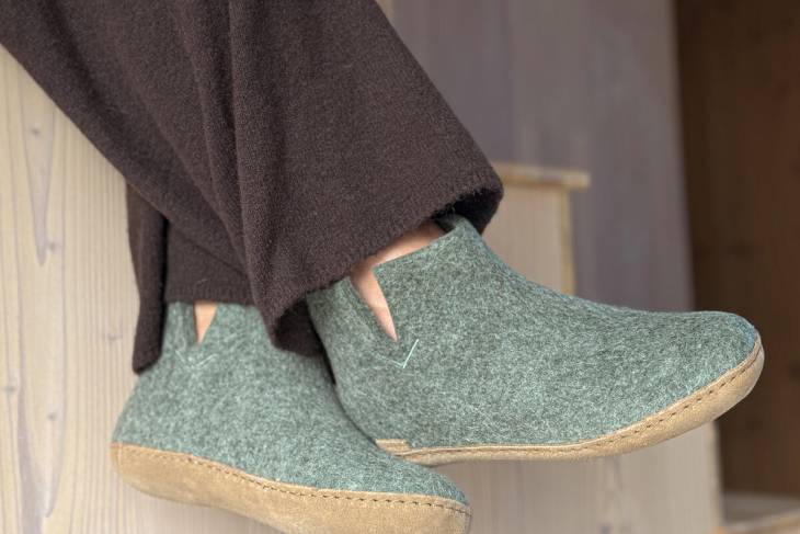 Glerups pantoffels zijn gemaakt van pure, natuurlijke wol die zich naar je voeten vormt. De wol ademt en houdt je voeten behaaglijk warm op frisse ochtenden, terwijl ze luchtig aanvoelt zodra de temperatuur stijgt. Zonder sokken zijn ze op hun best. Het dubbele vilten voetbed zorgt voor zachte, ondersteunende stappen, perfect voor ontspannen ochtenden, thuiswerken of rustige lentedagen.