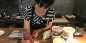 Door de jetlag ben ik vroeg uit de veren. Dat is mooi, want Portland Farmers Market gaat elke zaterdagochtend vroeg van start op het terrein van Portland State University. Veel Portlanders ontbijten hier. Zo ook pr-dame Rachael, een jonge moeder uit California die overal en nergens heeft gewoond, maar zich in Portland thuis voelt. Ze neemt me mee de markt over.